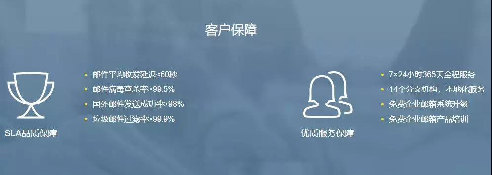 對于企業(yè)郵箱的安全性,263企業(yè)郵箱除了為企業(yè)客戶建立了一整套安全管理措施的同時,為企業(yè)客戶提供產(chǎn)品技術(shù)與服務(wù)品質(zhì)的SLA保障承諾,其中包含郵件系統(tǒng)無故障率不低于99.9%,郵件病毒平均查出比率不低于99.99%,郵件病毒平均殺毒率不低于99.99%等郵件安全品質(zhì)保障等服務(wù)質(zhì)量承諾。郵件系統(tǒng)安全穩(wěn)定,擁有國家專利的智能反垃圾技術(shù),7*24小時全年無休的客戶服務(wù),令企業(yè)信息安全保障不再是空頭支票。